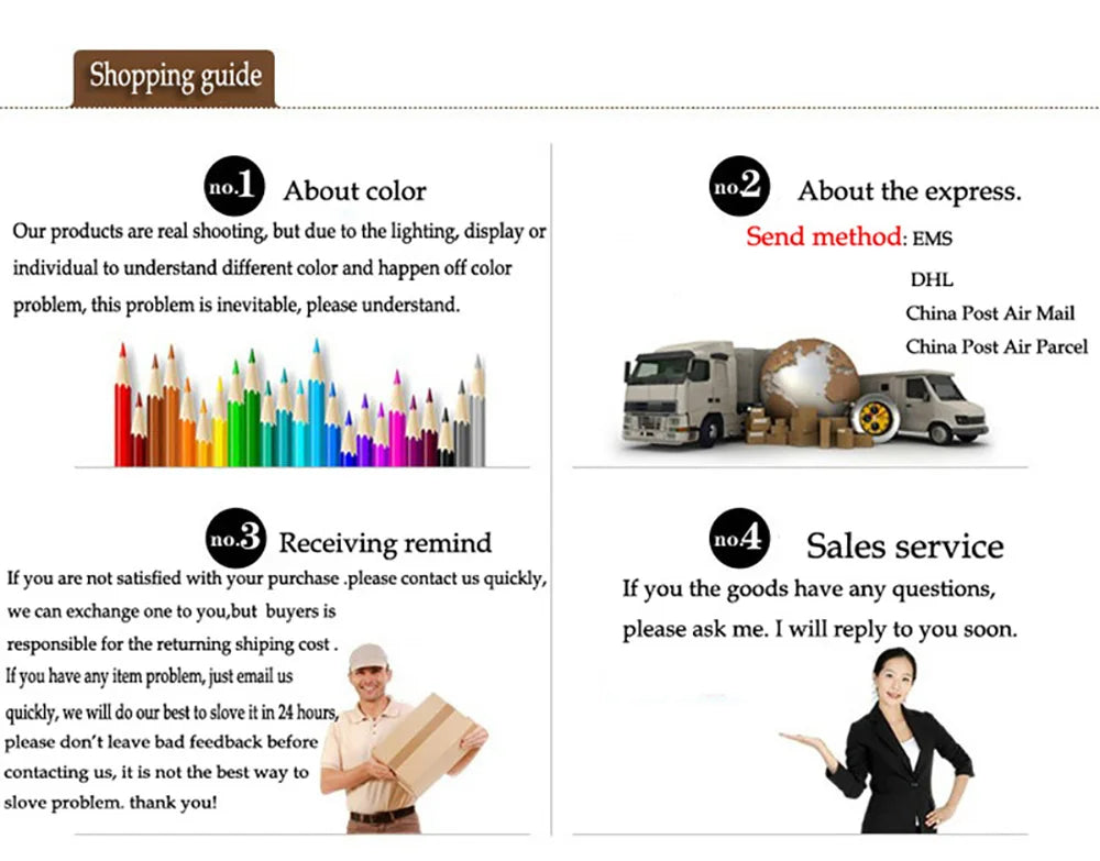 2. If the products you received was damaged or wrong styles, please don't leave any negative feedbacks first, kindly please contact us,we will deal with it and work out the best solutions, Your satisfication is our motion to do better.